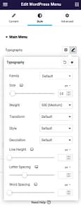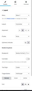 First picture is how you set the menu. I have 20+ menus. The second picture is what I used to set the typography for the menu. The third picture is setting the background color to black.