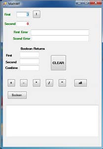I created a simple math calculator. It can do +, -, *, /, and power of two numbers. It can display each individually or all of them. This was a simple program for a Windows Form. I figured out how to use a textbox to display multiple lines.