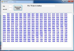 Next item on my list of Windows Form programming. This is a simple 2D multiplication table app. It can display up to 15 x 15. It is due to the box size. Windows form version has not been programmed for validation yet. I am planning on this in the near future. It does remove the value after generate.